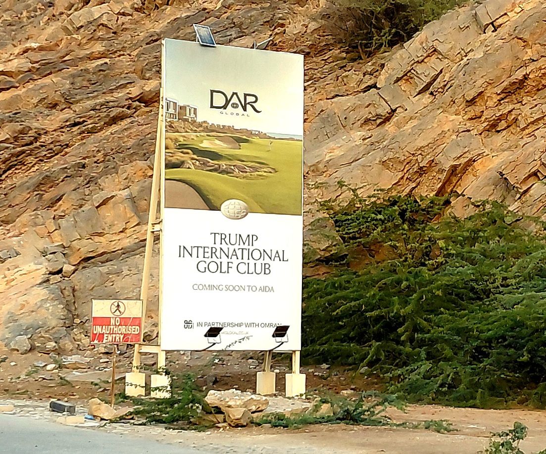 Jen kousek odtud se nachází pláž Yitti, údajně ta nejkrásnější ze všech. Jenomže ouha, na silnici ukazatele ukazují, Google navigace naviguje, ovšem za zatáčkou je závora a u ní voják. Dál se nejede, protože Trump tu staví golfový resort. Pomiňme, zda je dobrý nápad stavět golfové hřiště zrovna na poušti, ale to že zrovna tenhle projekt podporuje ománská vláda je určitě jen náhoda. Po souši se už prostě na pláž Yitti nedostanete. Po moři to možná jde, nevím, nezkoušel jsem to. Možná tam kotví letadlová loď, aby tu pláž Doníkovi někdo nevykoukal.