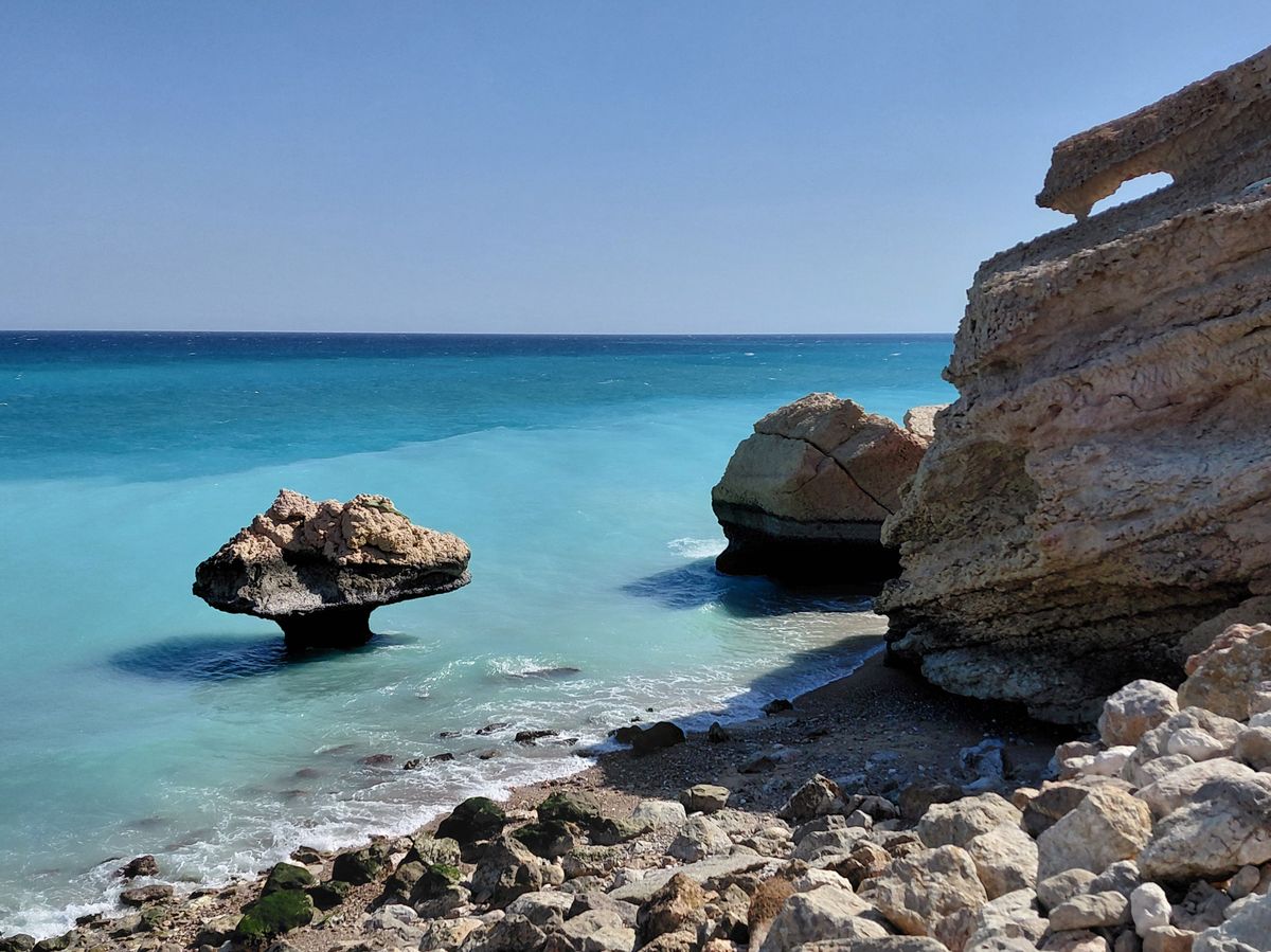 V Ománu najdete luxusní plážové resorty a taky kilometry divokých pláží. A o překvapení není nouze. U pláže Khairan jsme původně zastavili jen na fotky. Okamžitě jsme byli obklopeni houfem místních kapitánů toužících nás nalodit a odvést šnorchlovat na některý z ostrovů v zátoce. Vyhrál sympatický Fajs, jenž zkušeným okem vyhodnotil, že někdo, kdo má deset dioptrií jako já, není perspektivní zájemce o šnorchlování. Nabídl se, že nás vezme jen tak na projížďku za polovic ceny, stejně prý jede vyzvednout nějaké potápěče. Inu, proč ne! Tyhle random zážitky jsou stejně nejlepší, jak říká moje dcera.