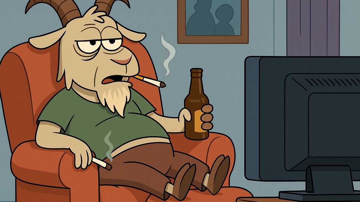 Důchodový kozel sedává na balkoně jako prorok moderní doby. Na stole popelník, půllitr a mobil, který používá jen k focení západu slunce, aby ho mohl poslat vnoučatům s větou „Takhle to vypadá, když člověk umí žít.“ Mezitím pozoruje sousedy a vede vnitřní dialog o tom, že dneska už nikdo nic nevydrží.