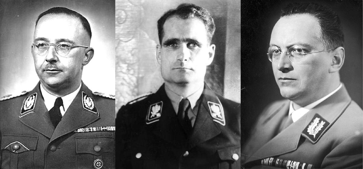 Trojice nacistických hodnostářů zleva: Heinrich Himmler (1900-1945), Rudolf Hess (1894-1987) a Konrád Henlein (1898-1945), kteří se u Březáčka nenajedli.