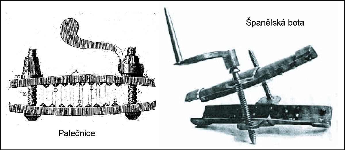 Stupně tortury – vazba, palečnice, španělská bota a žebřík