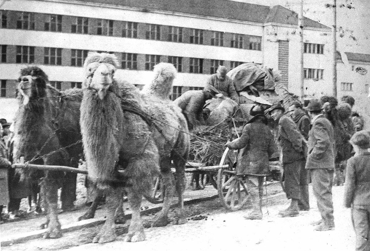 Ne, nejde o příjezd cirkusu, ale o příchod sovětských osvoboditelů na Vsetín. Rusové zapřahali do svých dřevěných povozů všechna možná ukradená zvířata, vedle koní nejčastěji krávy.