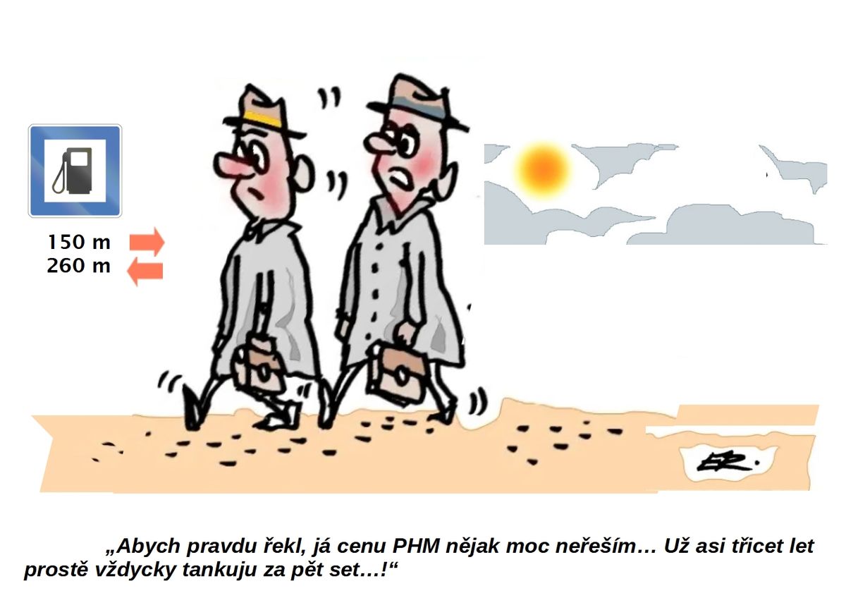 „Abych pravdu řekl, já cenu PHM nějak moc neřeším… Už asi třicet let prostě vždycky tankuju za pět set…!“