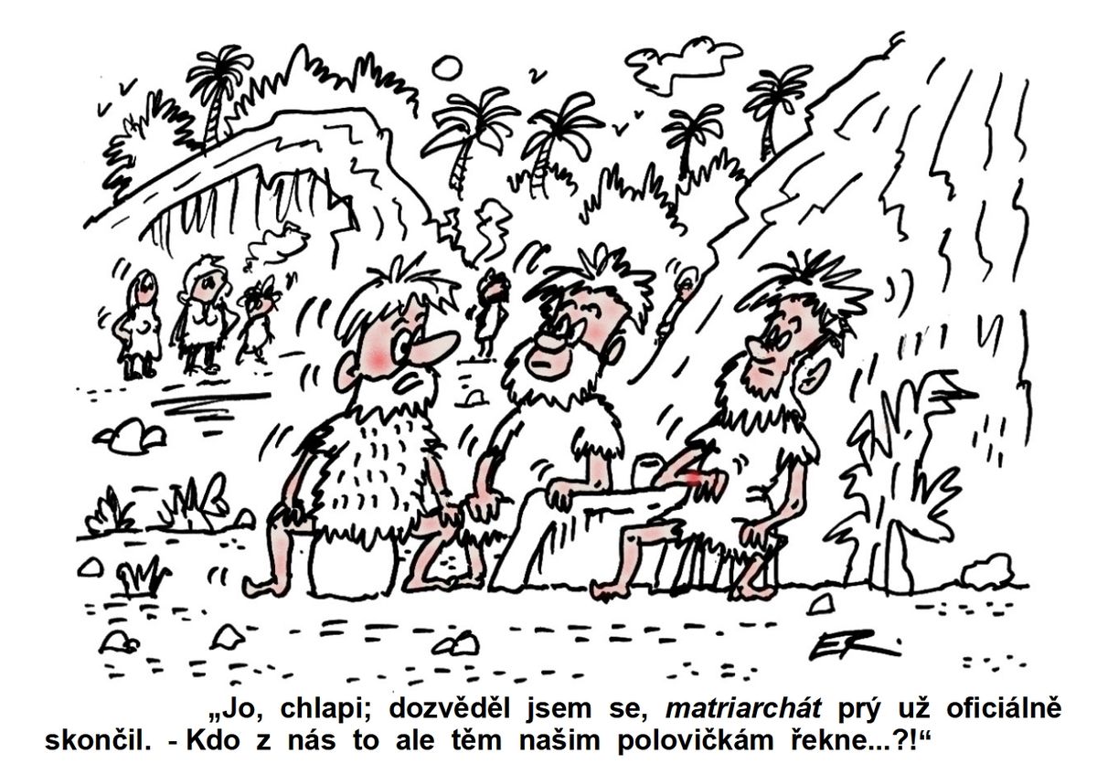 „Jo, chlapi; dozvěděl jsem se, že matriarchát prý už oficiálně skončil. - Kdo z nás to ale těm našim polovičkám řekne…?!“