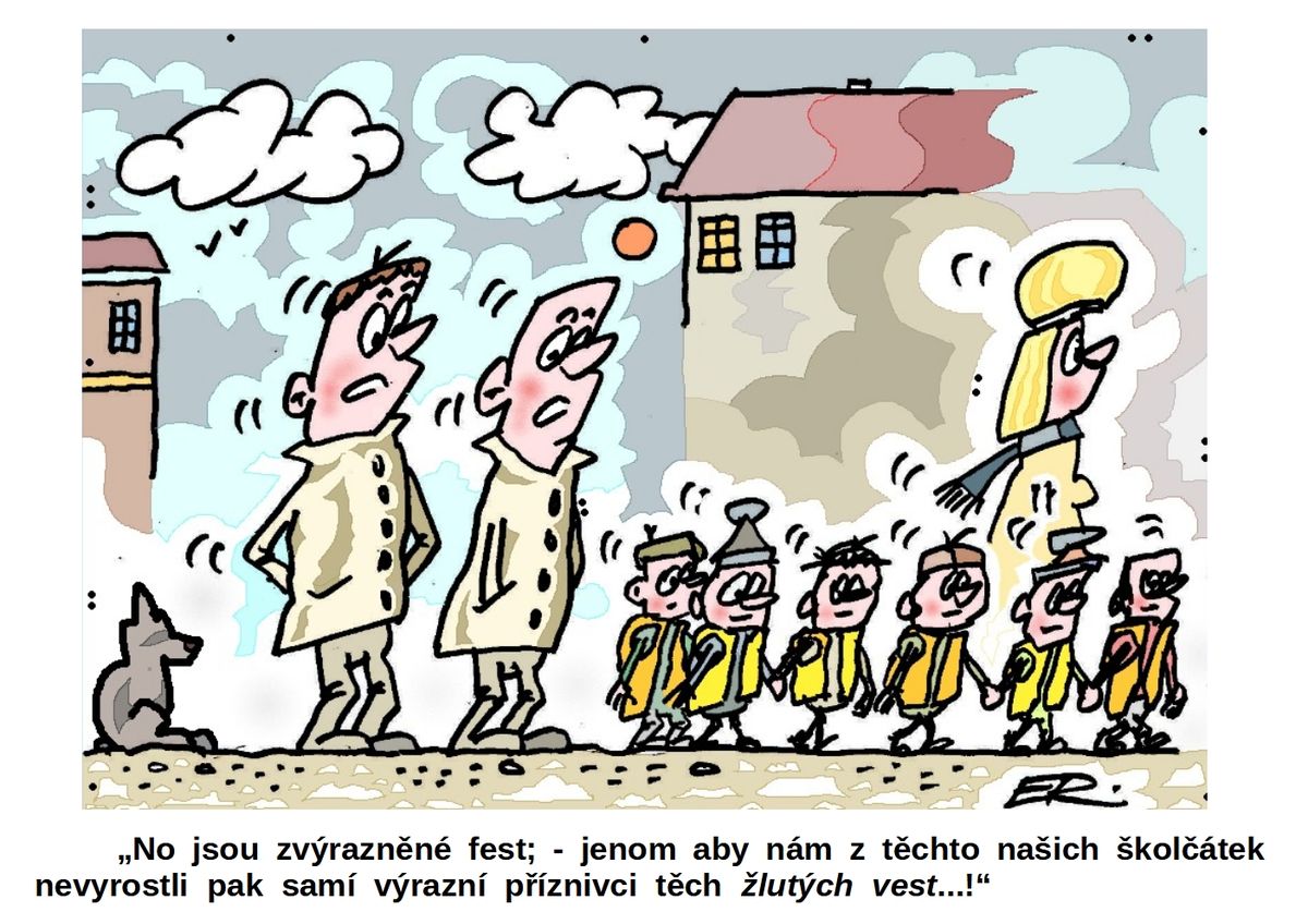 „No jsou zvýrazněné fest; - jenom aby nám z těchto našich školčátek nevyrostli pak samí výrazní příznivci těch žlutých vest…!“