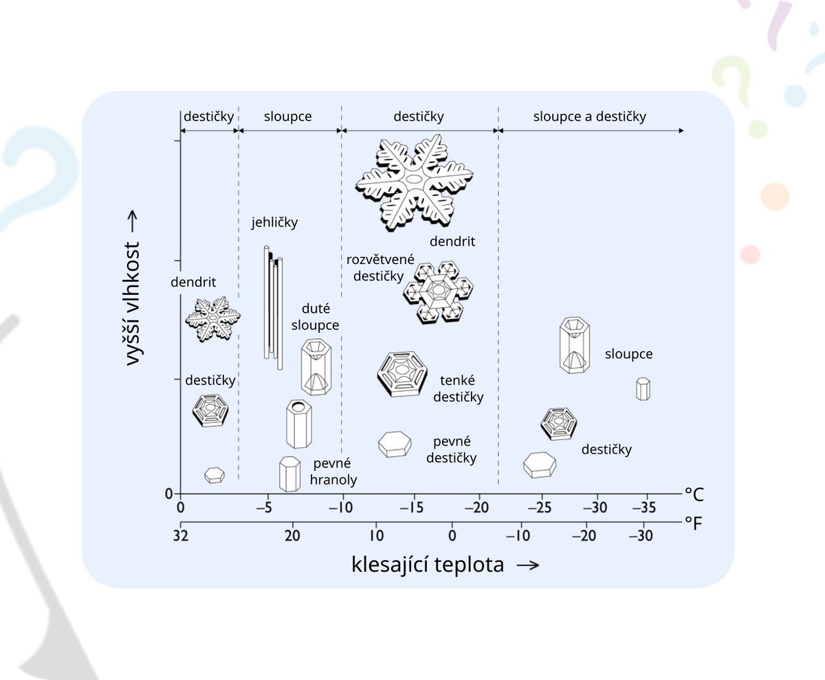 - Tvar a velikost vloček jsou ovlivněny teplotou a vlhkostí vzduchu v atmosféře.