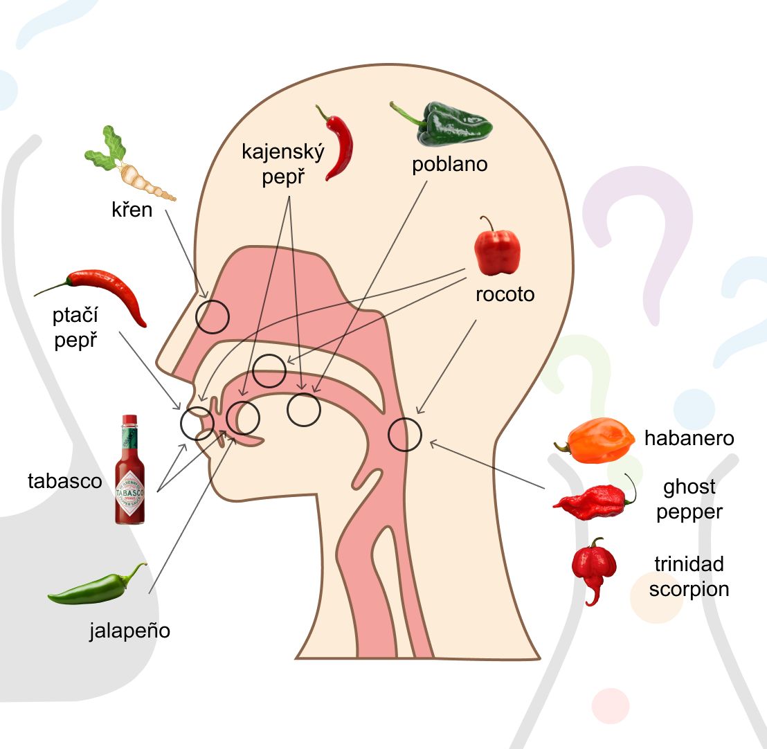 Proč pálivé jídlo někdy pálí v puse na jazyku a jindy až v krku?