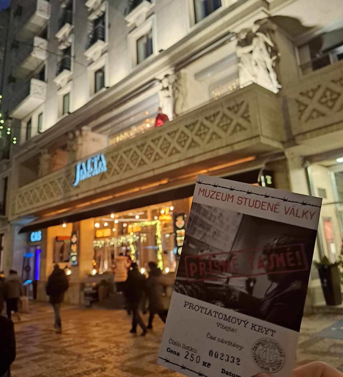 Do muzea jsem vešla přes recepci známého hotelu Jalta z Václavského náměstí. Sjela výtahem jedno patro dolů a ocitla se tu v minulém století uprostřed zuřící studené války mezi východním a západním blokem. Na velmi nepříjemném místě, kde je za tlustými zdmi bunkru přímo v srdci našeho hlavního města vystaveno mnoho artefaktů, které vás zavedou do světa STB, tehdejší policie, odposlechů či zbraní a plynových masek. Pojem studená válka tu prostě dostane jasné hmotné obrysy. Předvánoční čas možná není nejlepší k takové návštěvě, ale současná situace ve světě a hlavně v Evropě tento tehdejší svět cold war dost oživuje, i když v zastaralých a zaprášených kulisách.