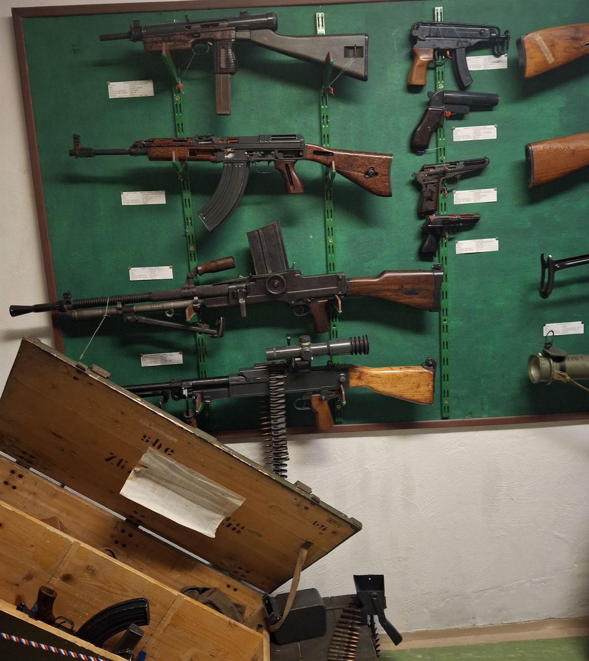V muzeu je ukázka zbraní, které používala tehdejší armáda a veřejná bezpečnost (policie) u nás.