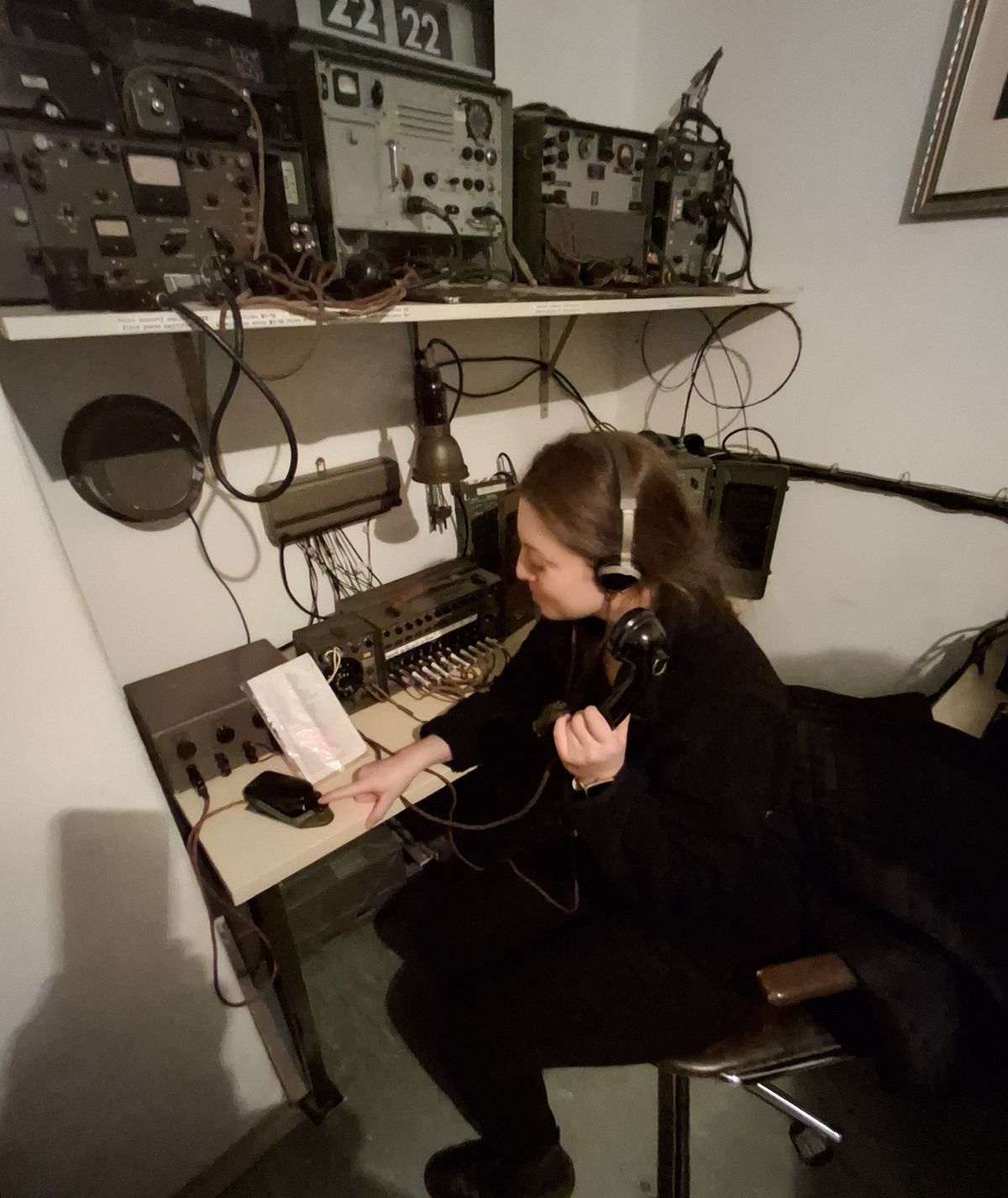Kryt měl však i další účel. Státní bezpečnost (STB) využívala bunkr také jako odposlouchávací špionážní centrálu. V pokojích Jalty byly rozmístěny takzvané štěnice (malá odposlouchávací zařízení), které byly ukryty na všemožných místech (například jak vidíte na fotografii níže i v kartáči na čištění kabátů). Na místě, kde na fotografii sedím, byl příslušník STB se sluchátky a před ním viselo na stěně schéma pokojů. Mohl si tak přepínat do sluchátek odposlechy z různých místností.