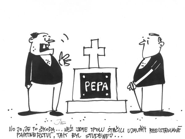 Janek LetenskýVtipy, koláže, karikatury„Hele Pepo, myslíš, že zná to přísloví ‘kdo jinému jámu kopá…’“Dnes